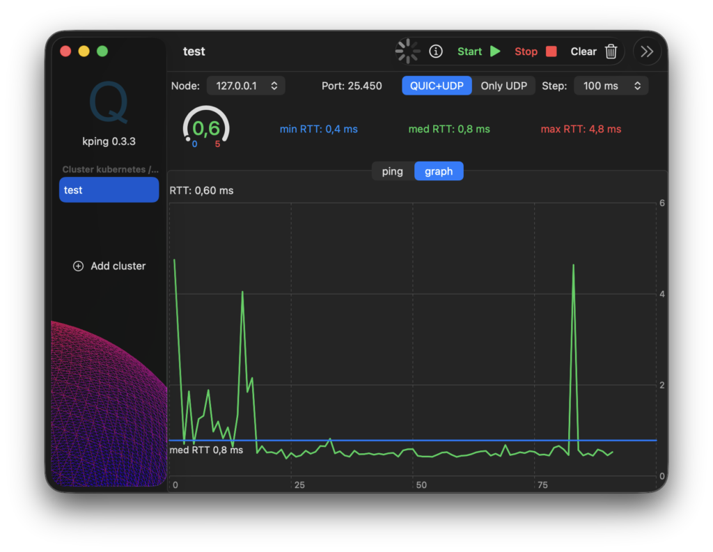 kping is a tool to test connectivity and measure delays between two end points. It can use connections with TCP, UDP or UDP/QUIC.